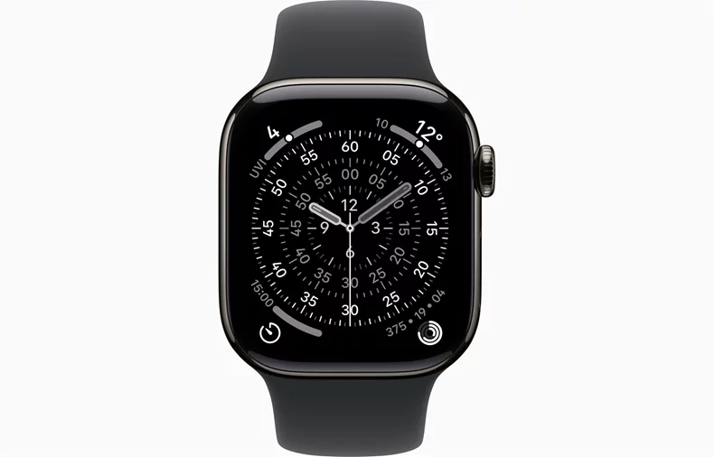 Apple Watch Series 11 GPS + LTE 42mm MF8T4 Slate Titanium Case with Black Sport Band M/L